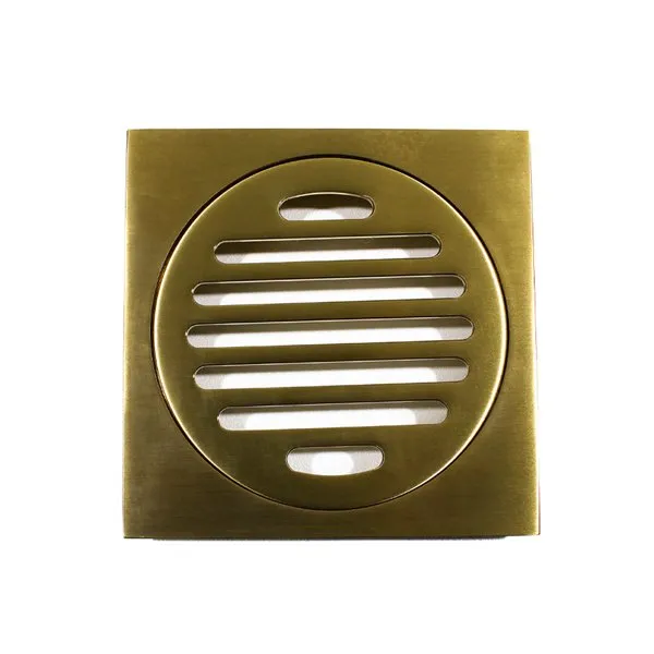 Square Floor Drain – Bright Gold (External 85mm & 75mm Outlet)